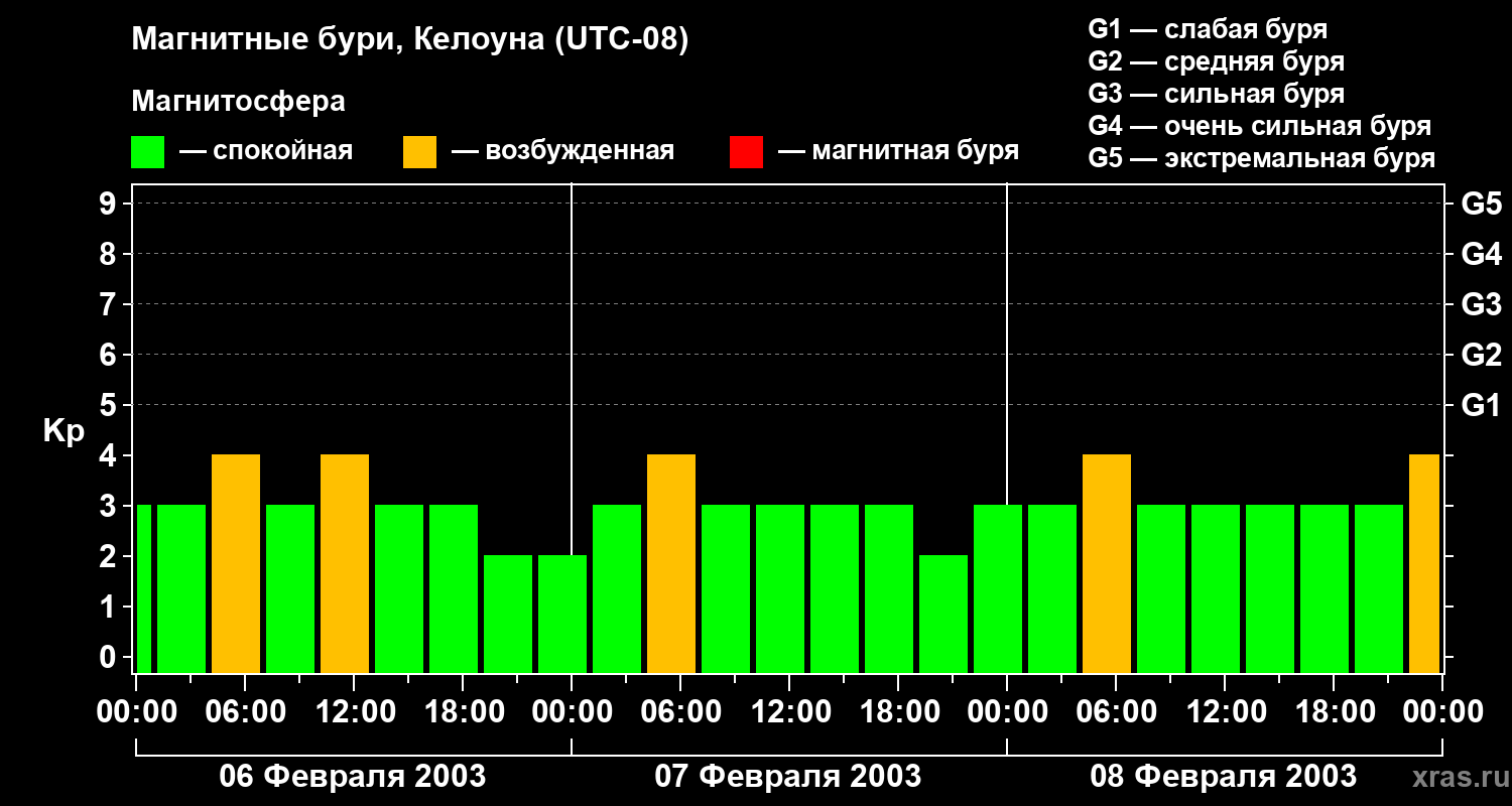 Магнитные бури в Келоуне — 8 февраля 2003 года
