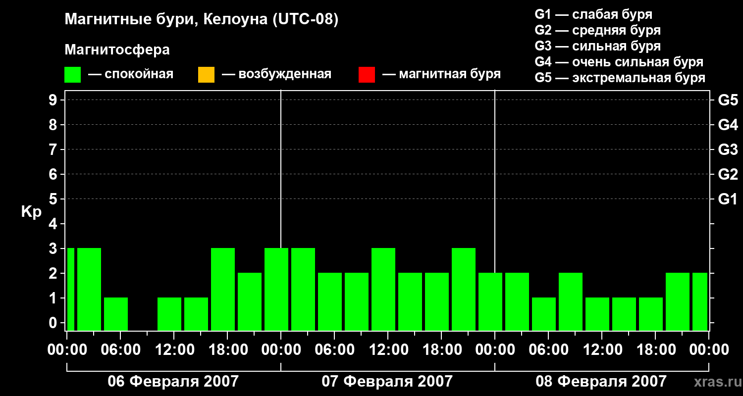 Магнитные бури в Келоуне — 8 февраля 2007 года