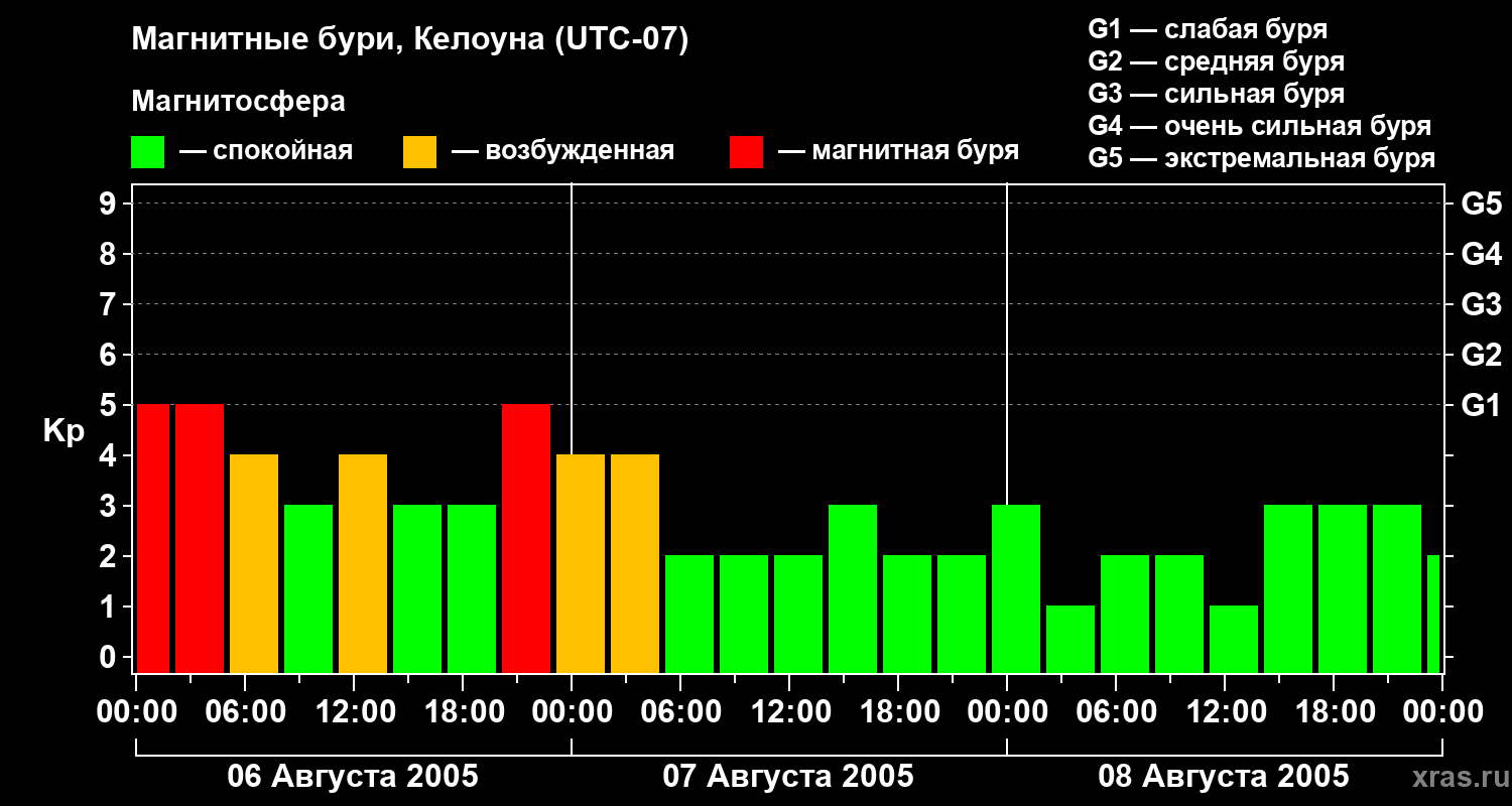 Магнитные бури в Келоуне — 8 августа 2005 года