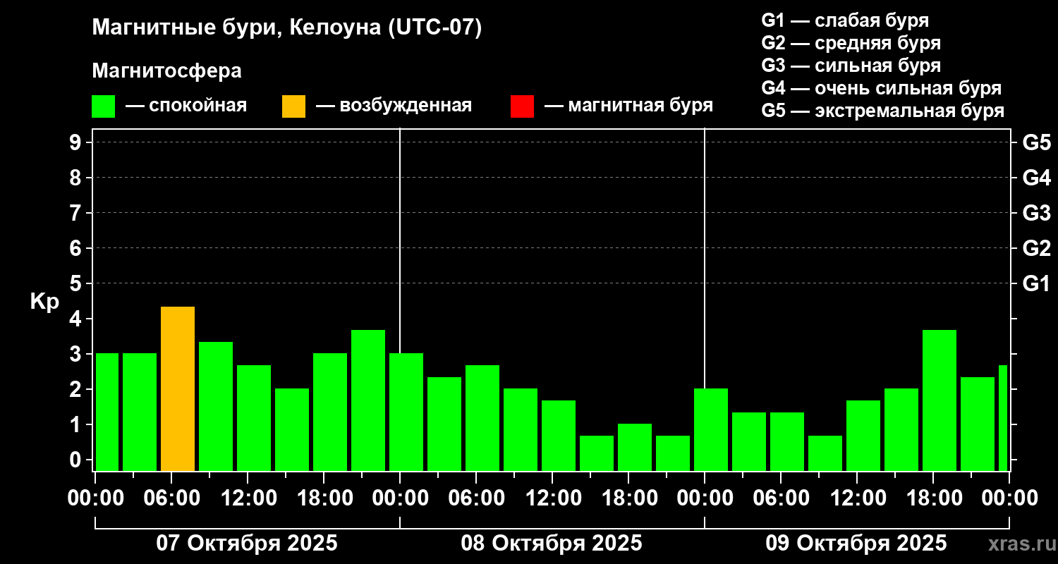 Магнитные бури в Келоуне — 9 октября 2025 года