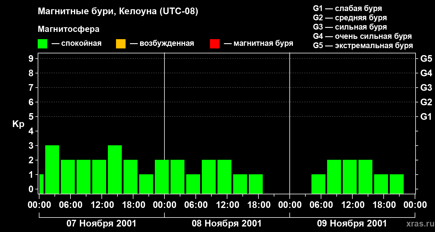 Магнитные бури в Келоуне — 9 ноября 2001 года