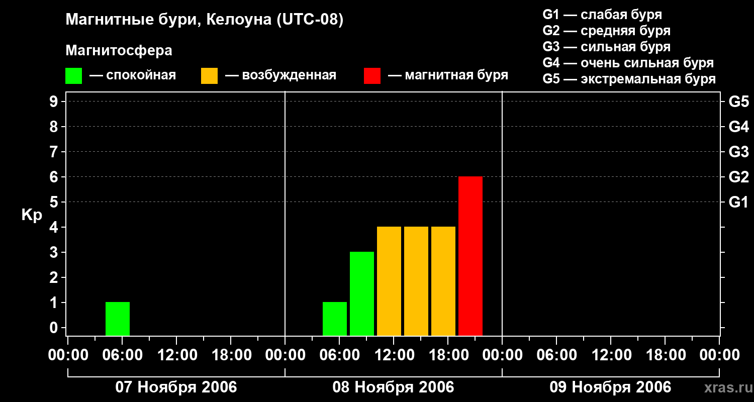 Магнитные бури в Келоуне — 9 ноября 2006 года