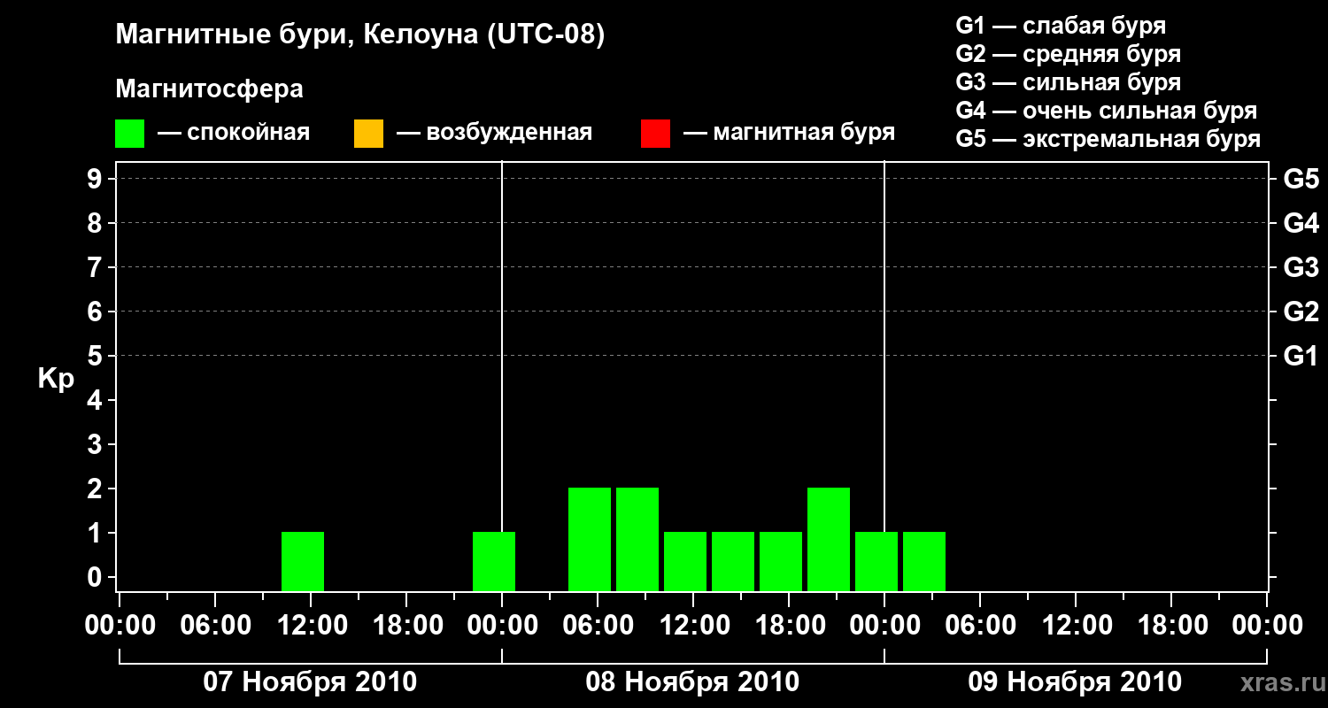 Магнитные бури в Келоуне 9 ноября 2010 года