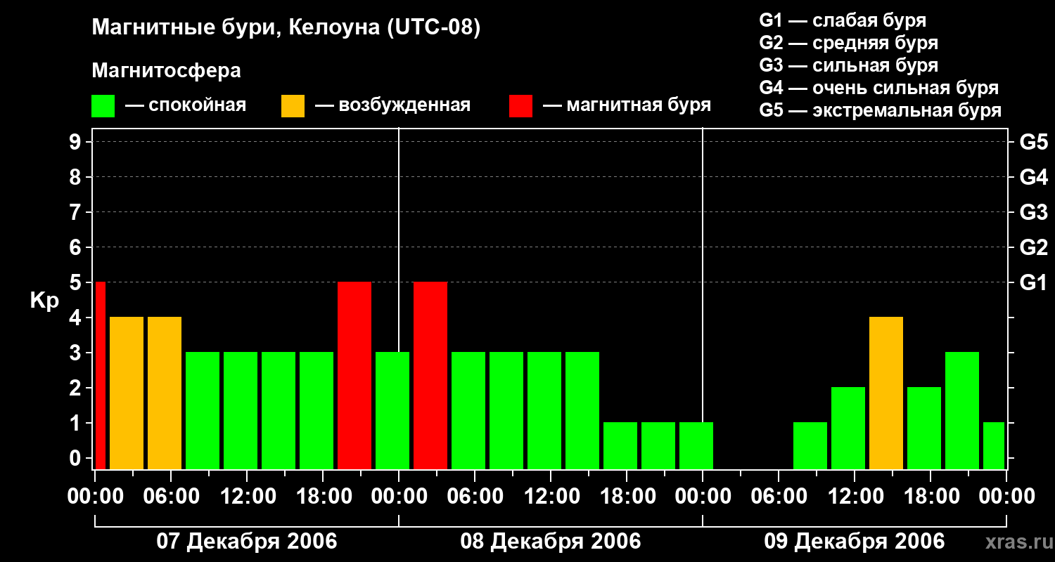Магнитные бури в Келоуне — 9 декабря 2006 года