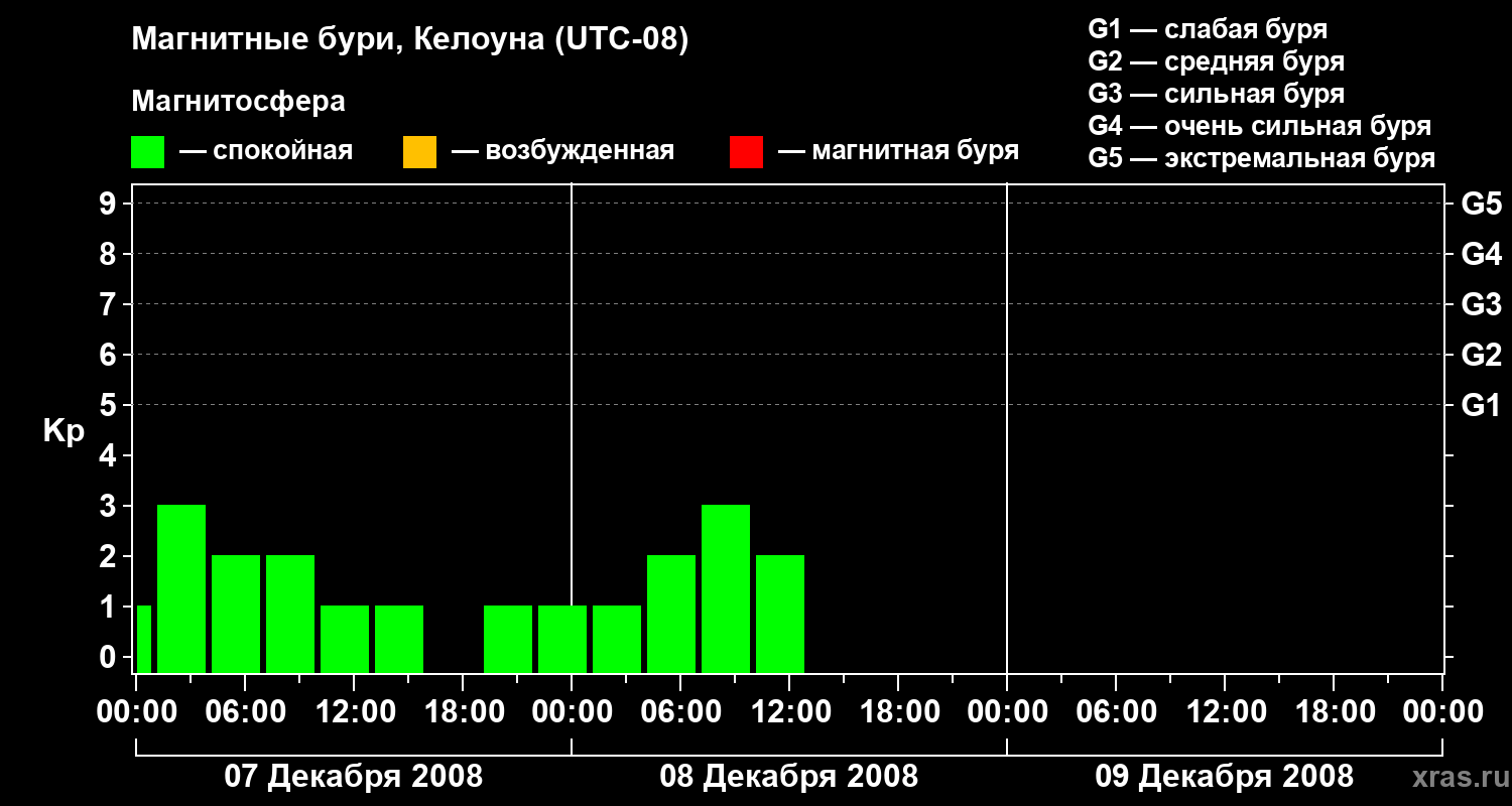 Магнитные бури в Келоуне — 9 декабря 2008 года