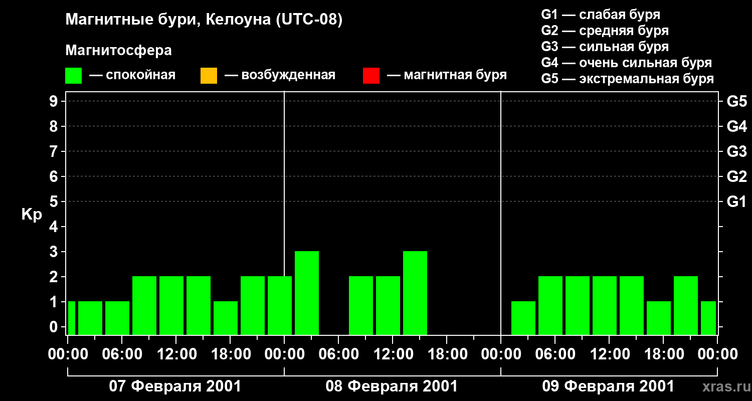 Магнитные бури в Келоуне — 9 февраля 2001 года