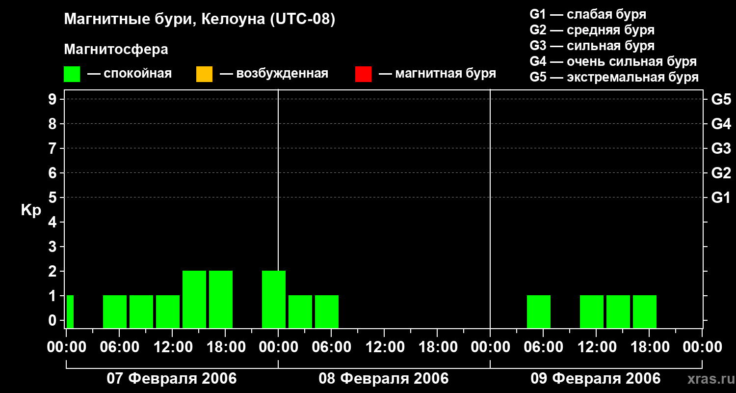 Магнитные бури в Келоуне — 9 февраля 2006 года