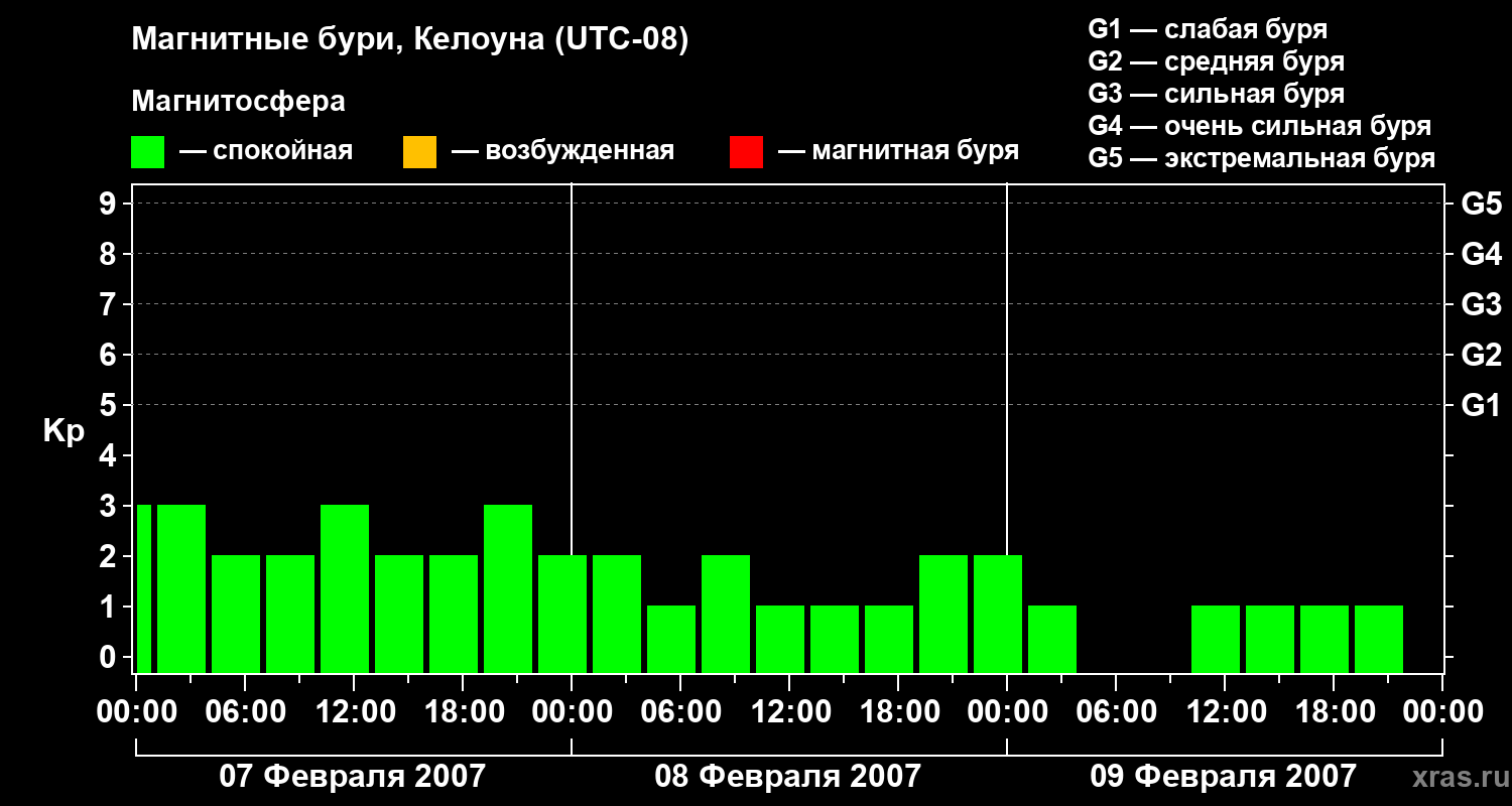 Магнитные бури в Келоуне — 9 февраля 2007 года