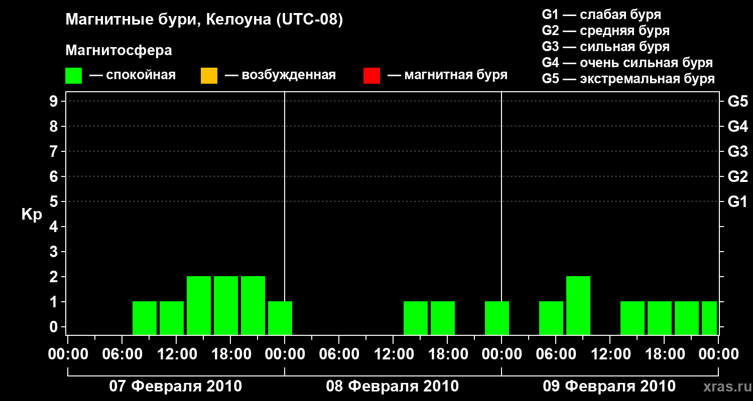 Магнитные бури в Келоуне 9 февраля 2010 года