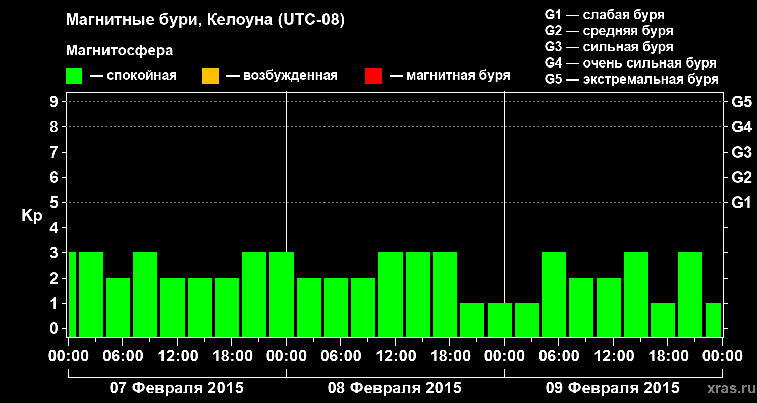 Магнитные бури в Келоуне 9 февраля 2015 года