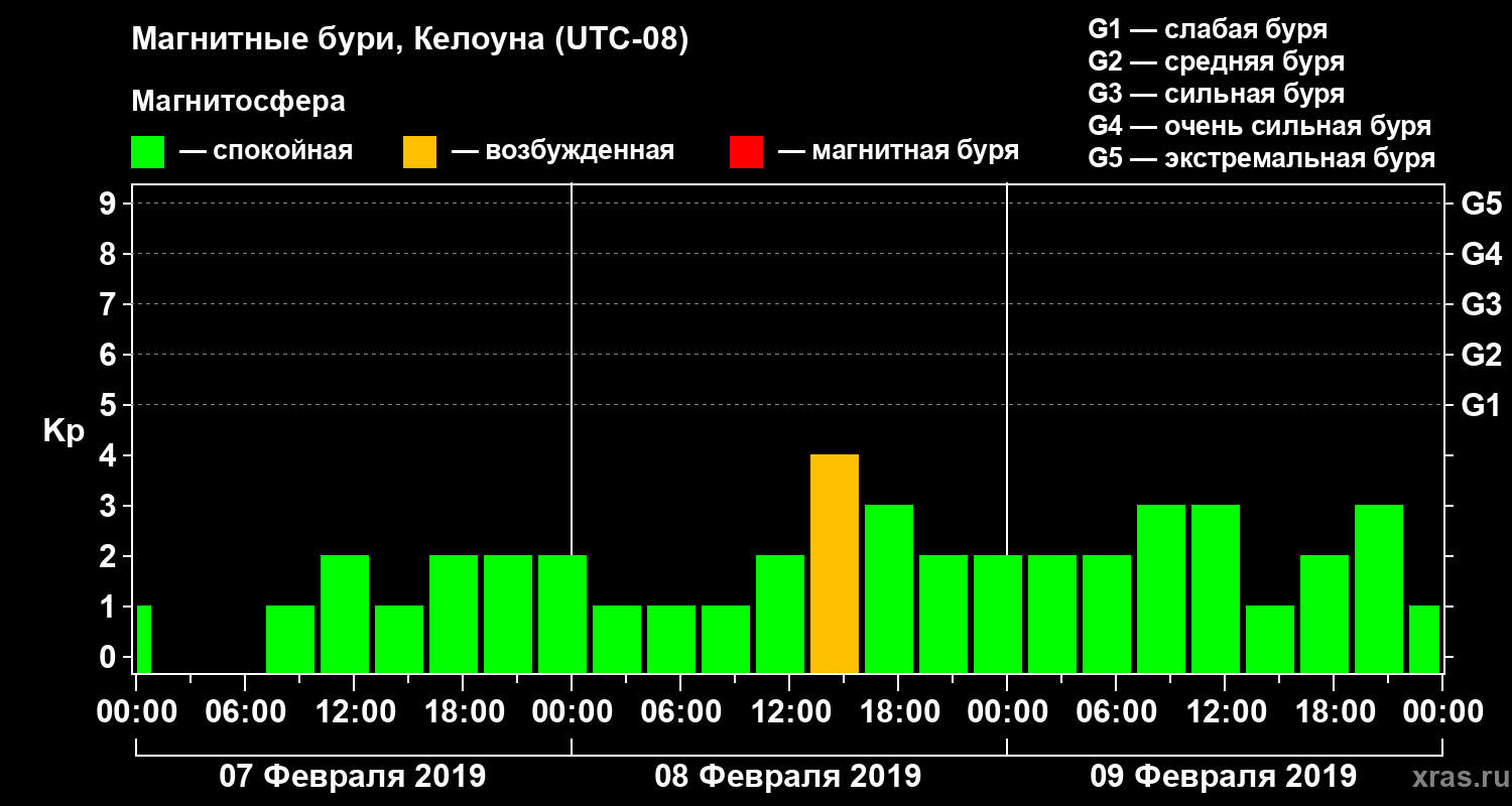 Магнитные бури в Келоуне 9 февраля 2019 года