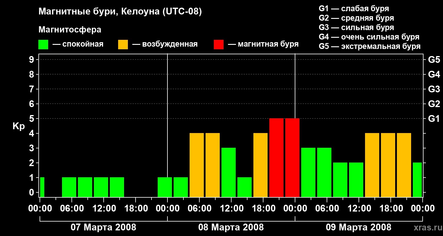 Магнитные бури в Келоуне — 9 марта 2008 года
