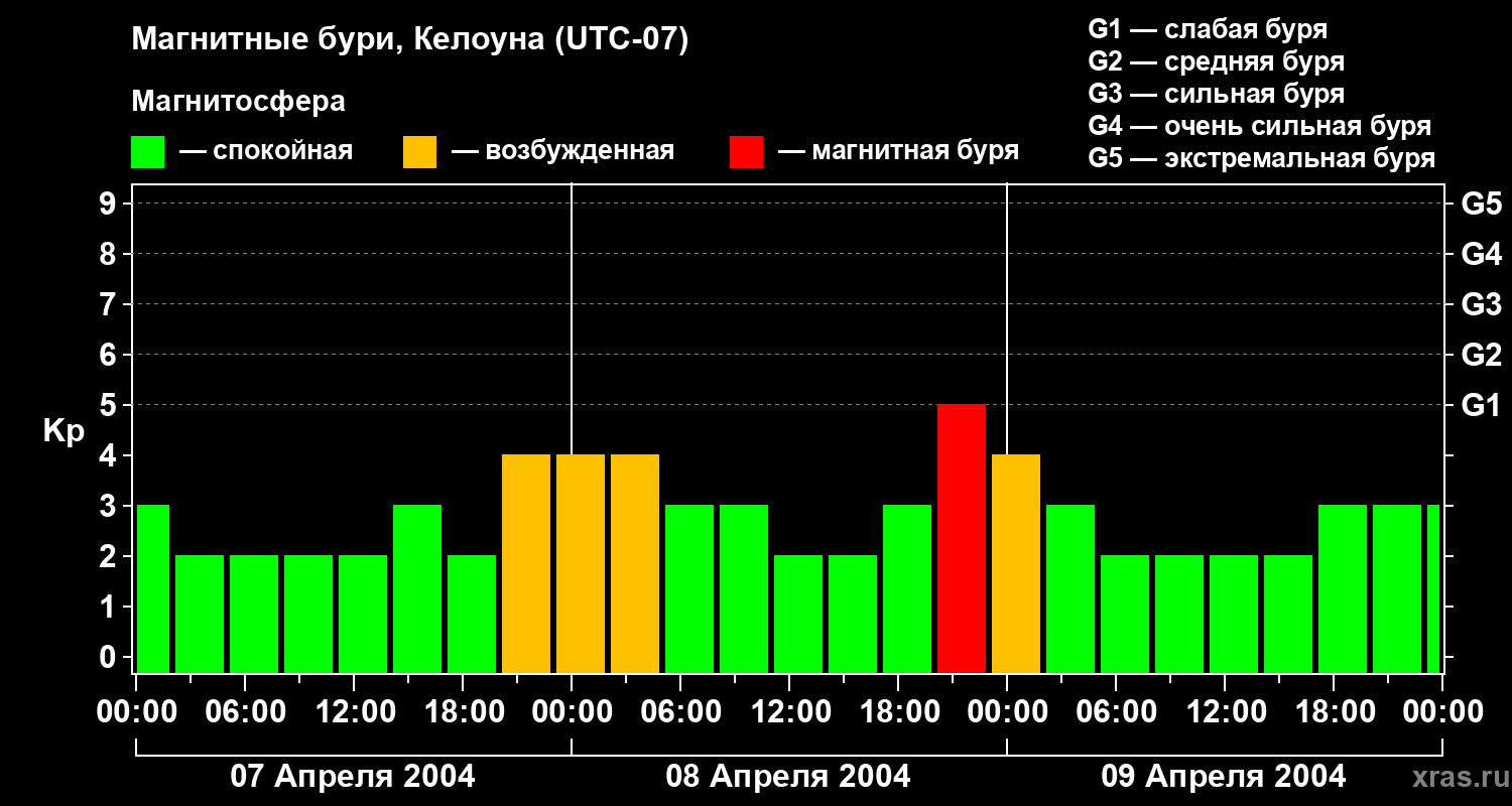 Магнитные бури в Келоуне — 9 апреля 2004 года