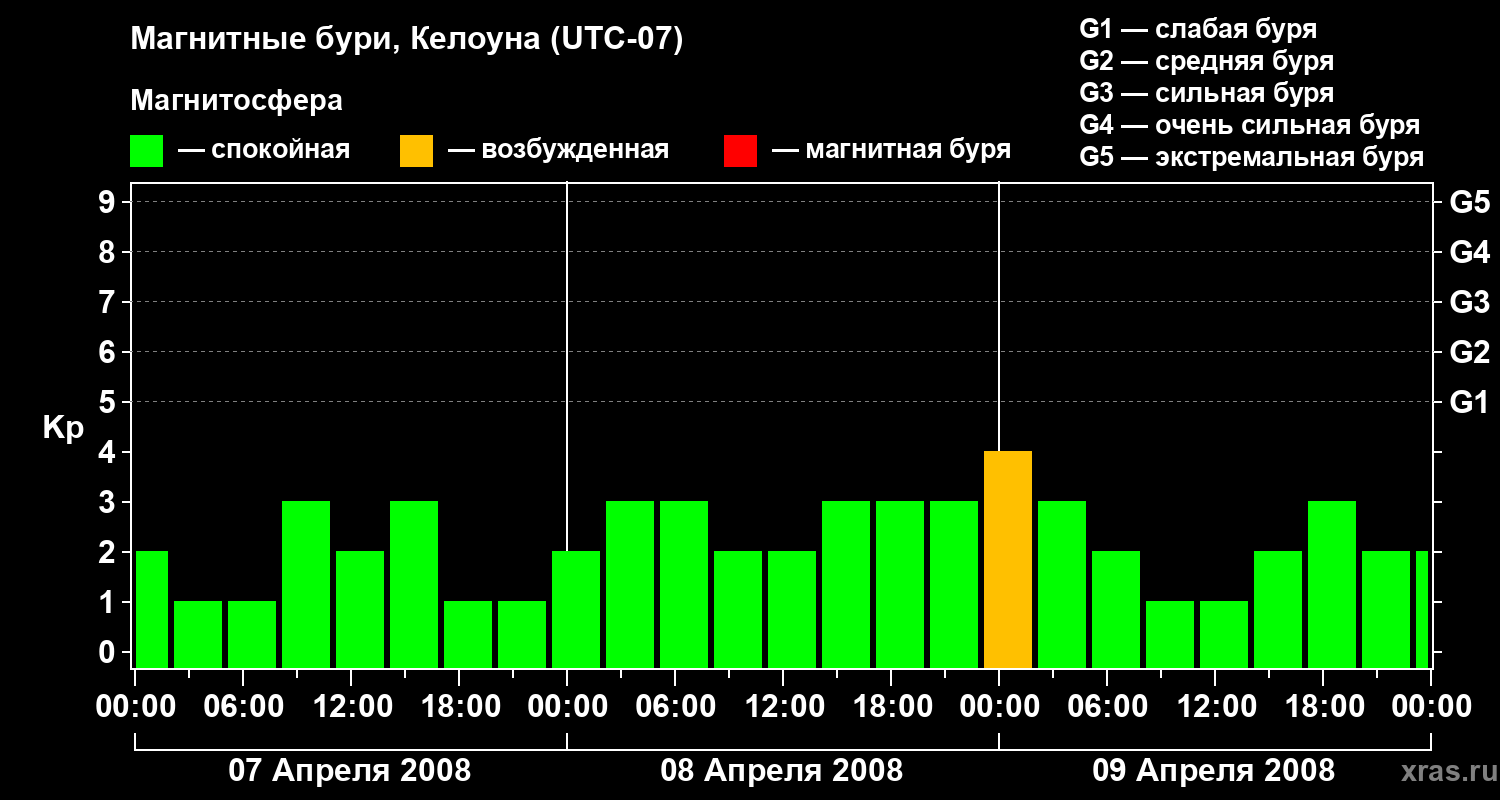 Магнитные бури в Келоуне — 9 апреля 2008 года