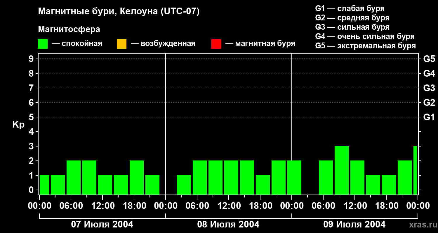 Магнитные бури в Келоуне — 9 июля 2004 года