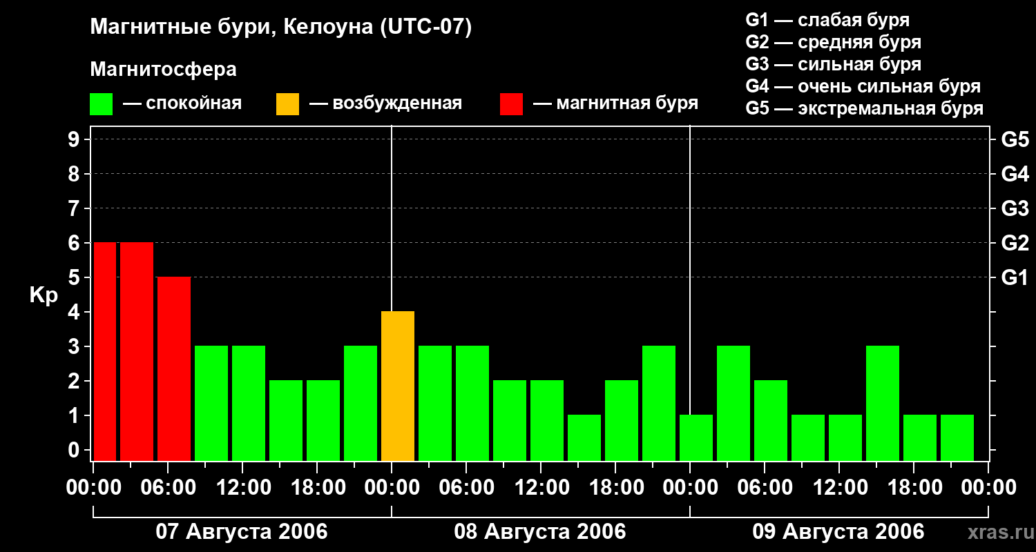 Магнитные бури в Келоуне — 9 августа 2006 года