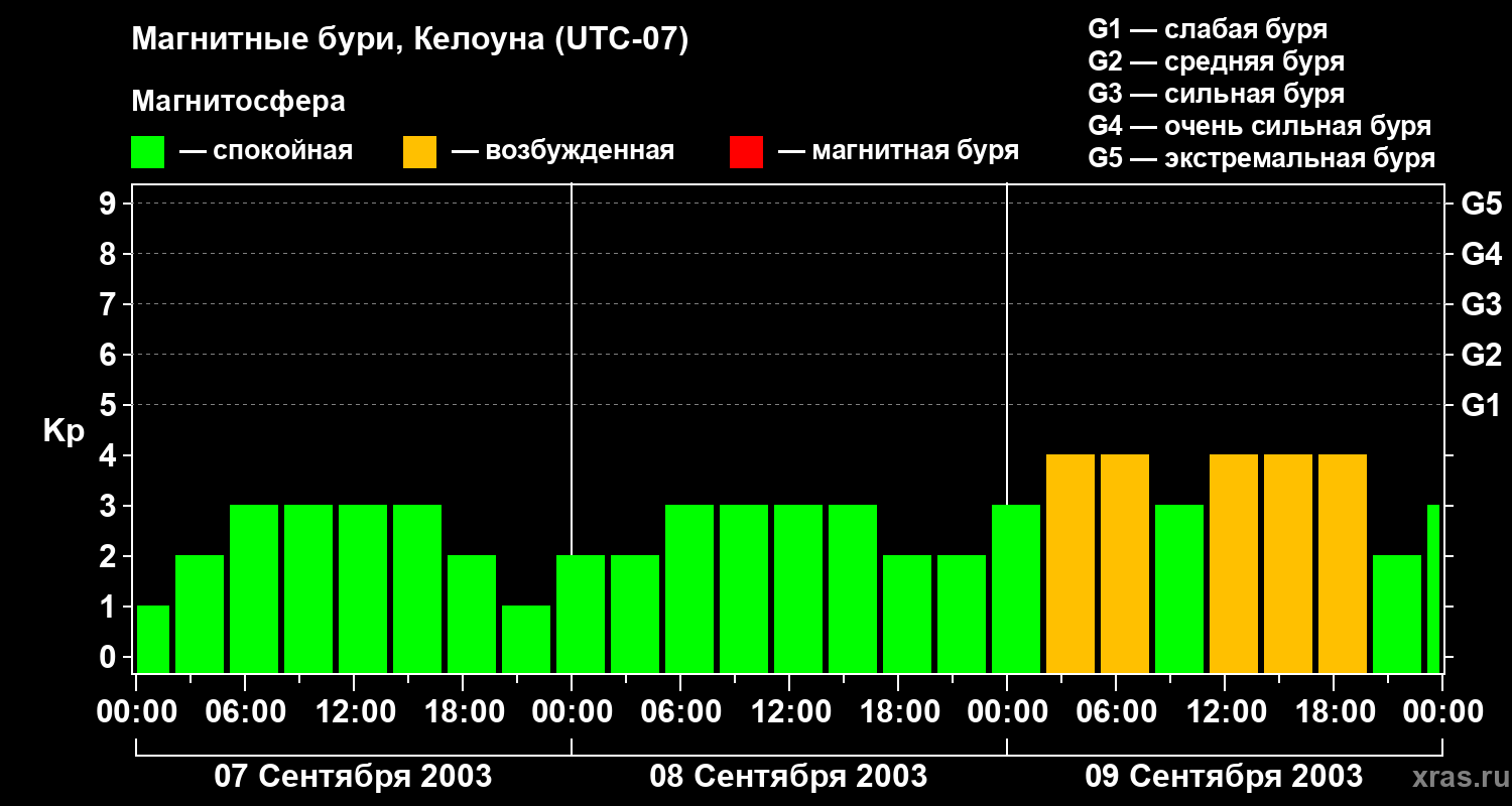 Магнитные бури в Келоуне — 9 сентября 2003 года