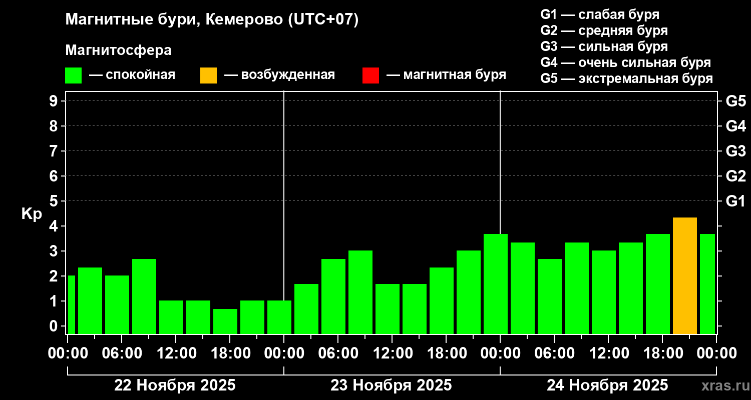 Магнитные бури Кемерово — 24 ноября 2025 года