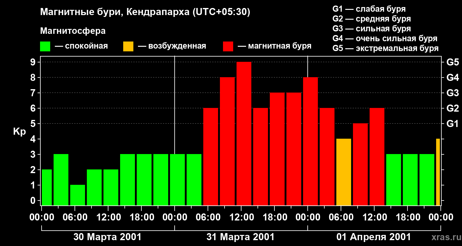 Магнитные бури в Кендрапархе 1 апреля 2001 года