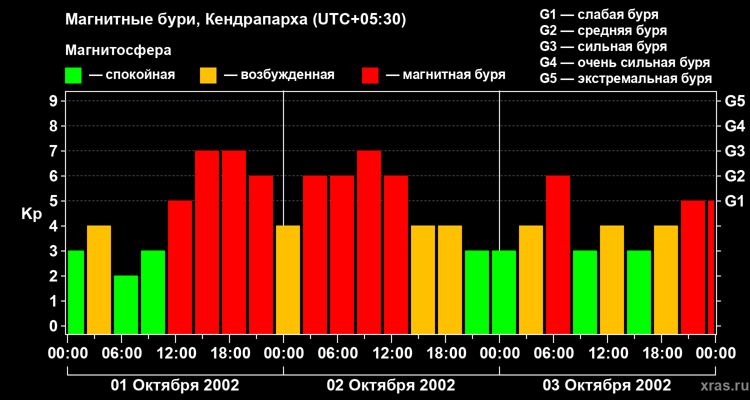 Магнитные бури в Кендрапархе 3 октября 2002 года