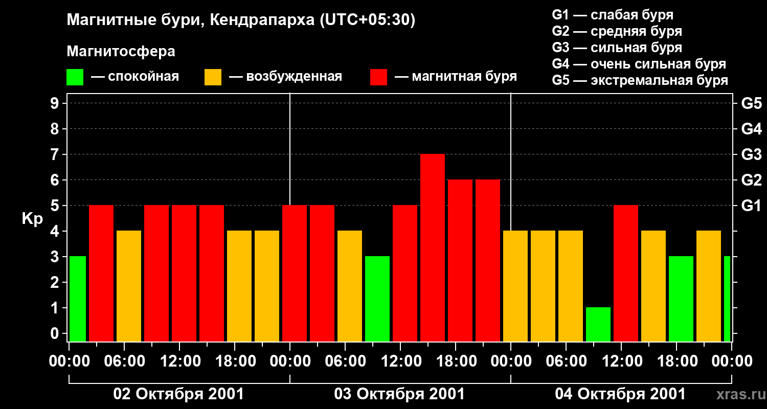 Магнитные бури в Кендрапархе — 4 октября 2001 года