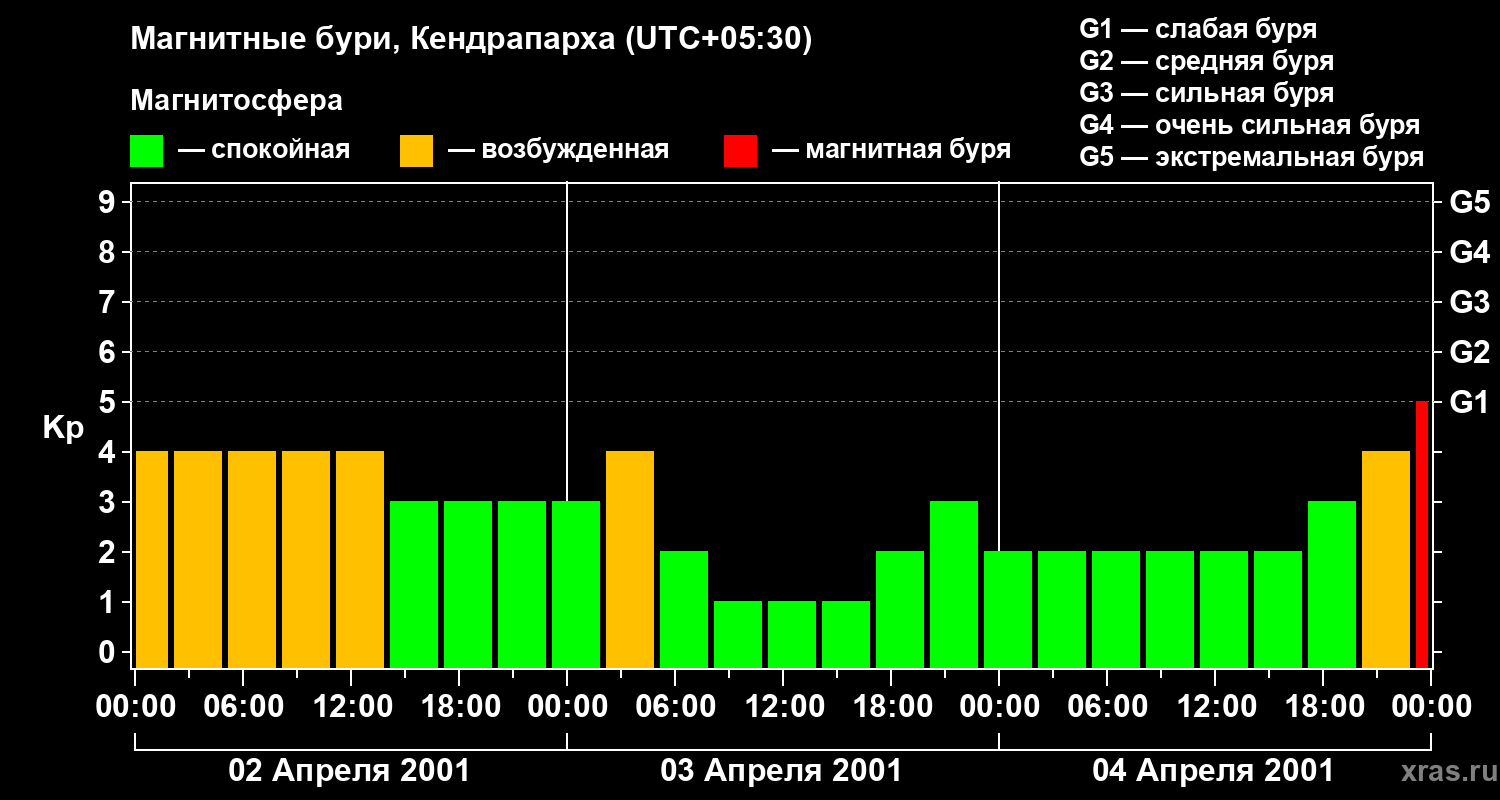 Магнитные бури в Кендрапархе — 4 апреля 2001 года