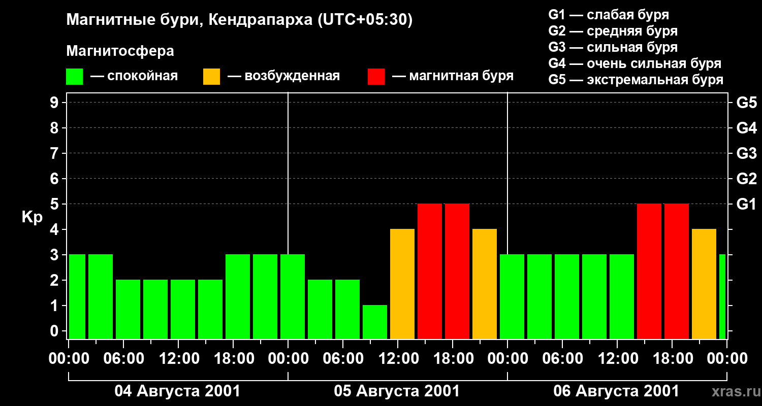 Магнитные бури в Кендрапархе — 6 августа 2001 года