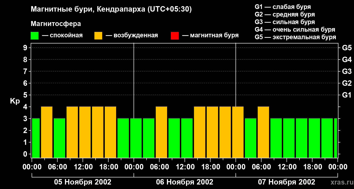 Магнитные бури в Кендрапархе в ноябре 2002 года
