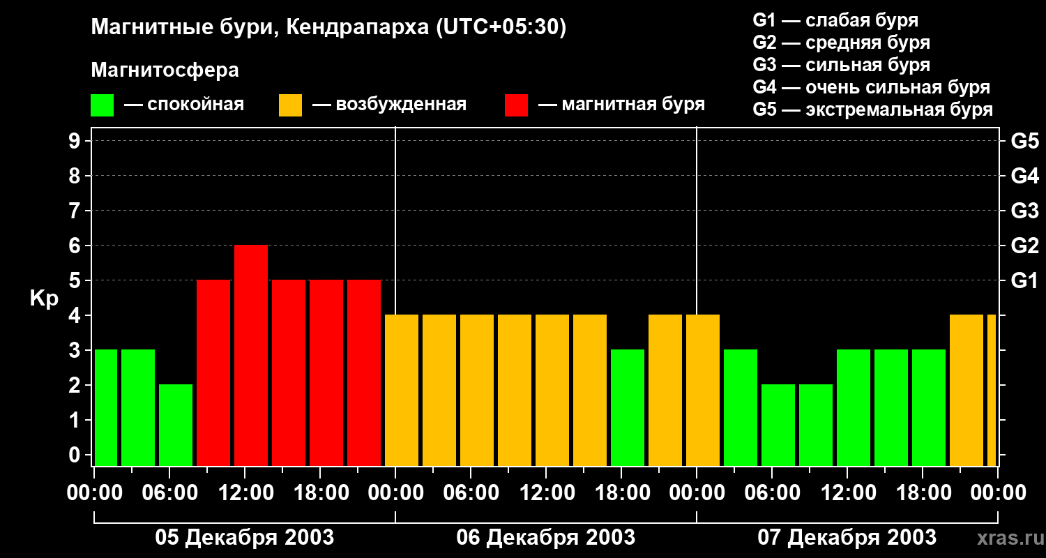 Магнитные бури в Кендрапархе в декабре 2003 года
