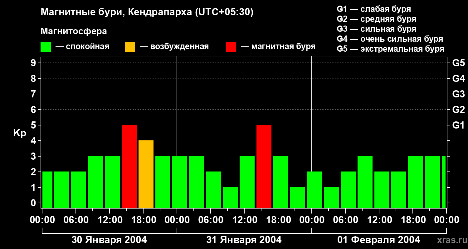 Магнитные бури в Кендрапархе — 1 февраля 2004 года