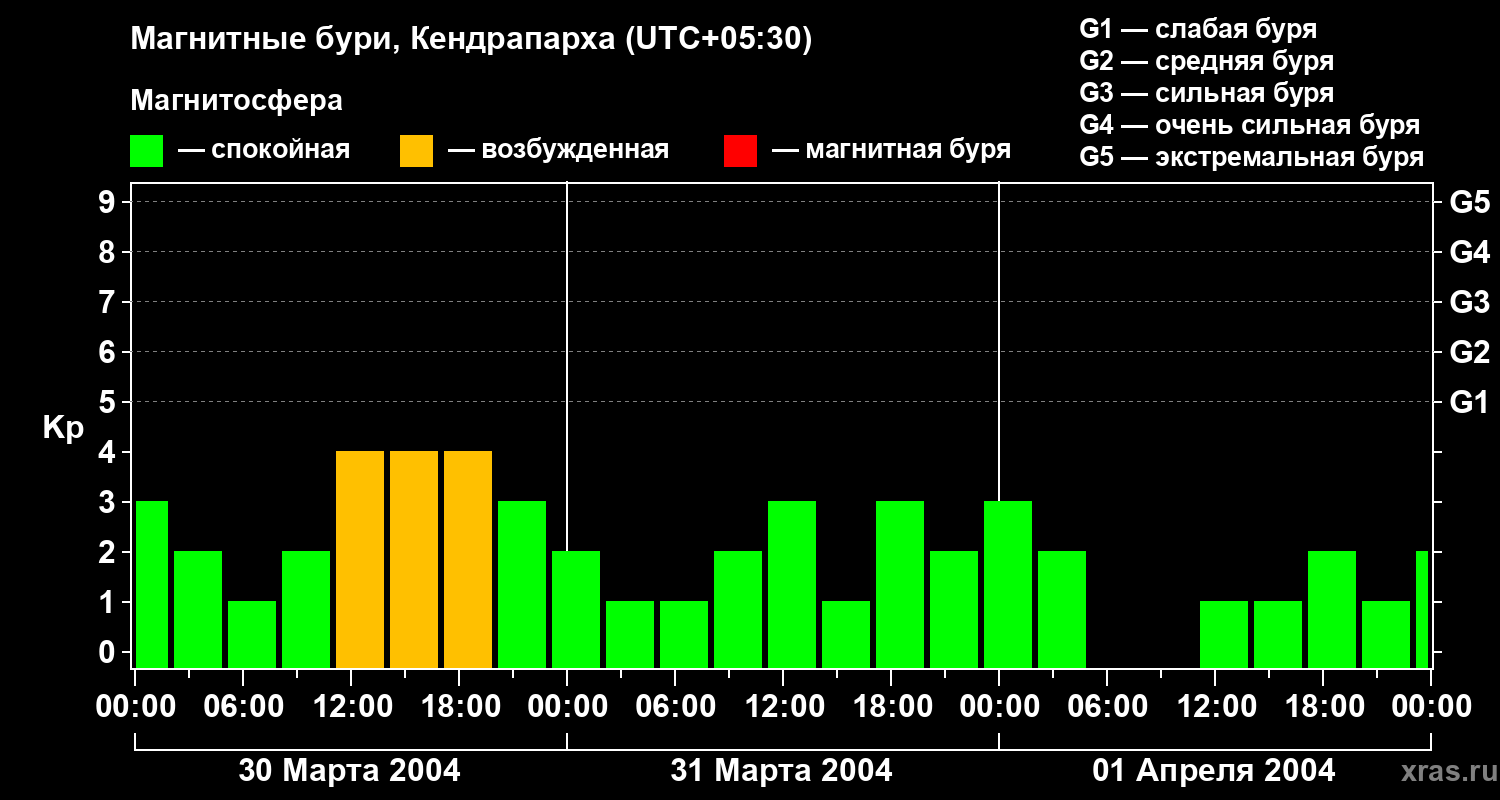 Магнитные бури в Кендрапархе 1 апреля 2004 года