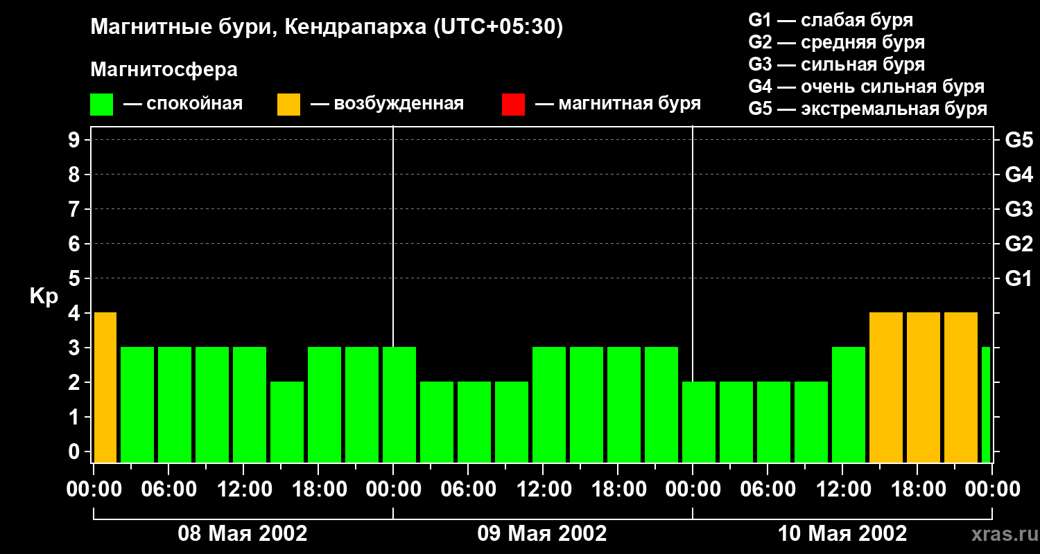 Магнитные бури в Кендрапархе 10 мая 2002 года