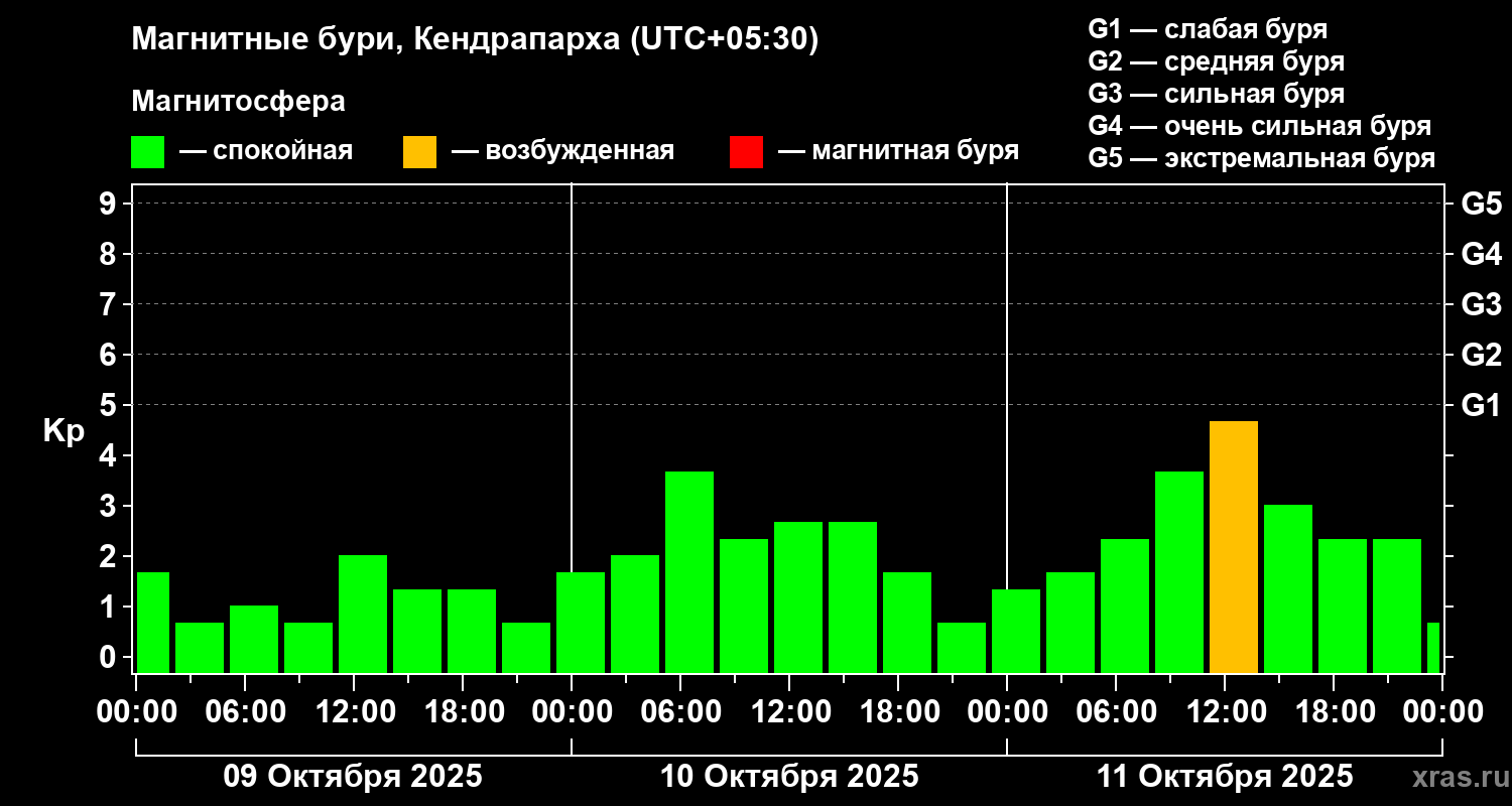 Магнитные бури в Кендрапархе 11 октября 2025 года