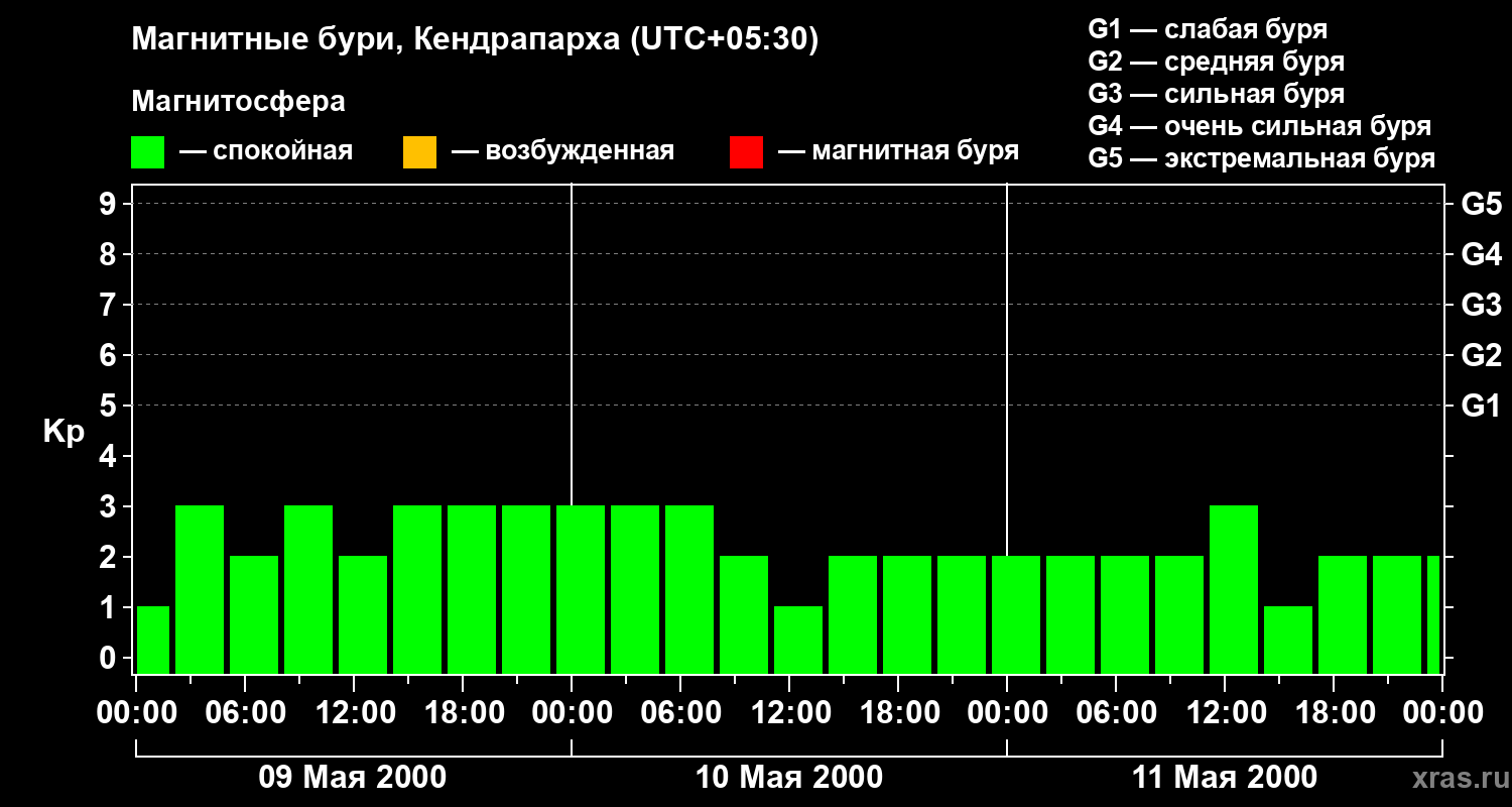 Магнитные бури в Кендрапархе 11 мая 2000 года