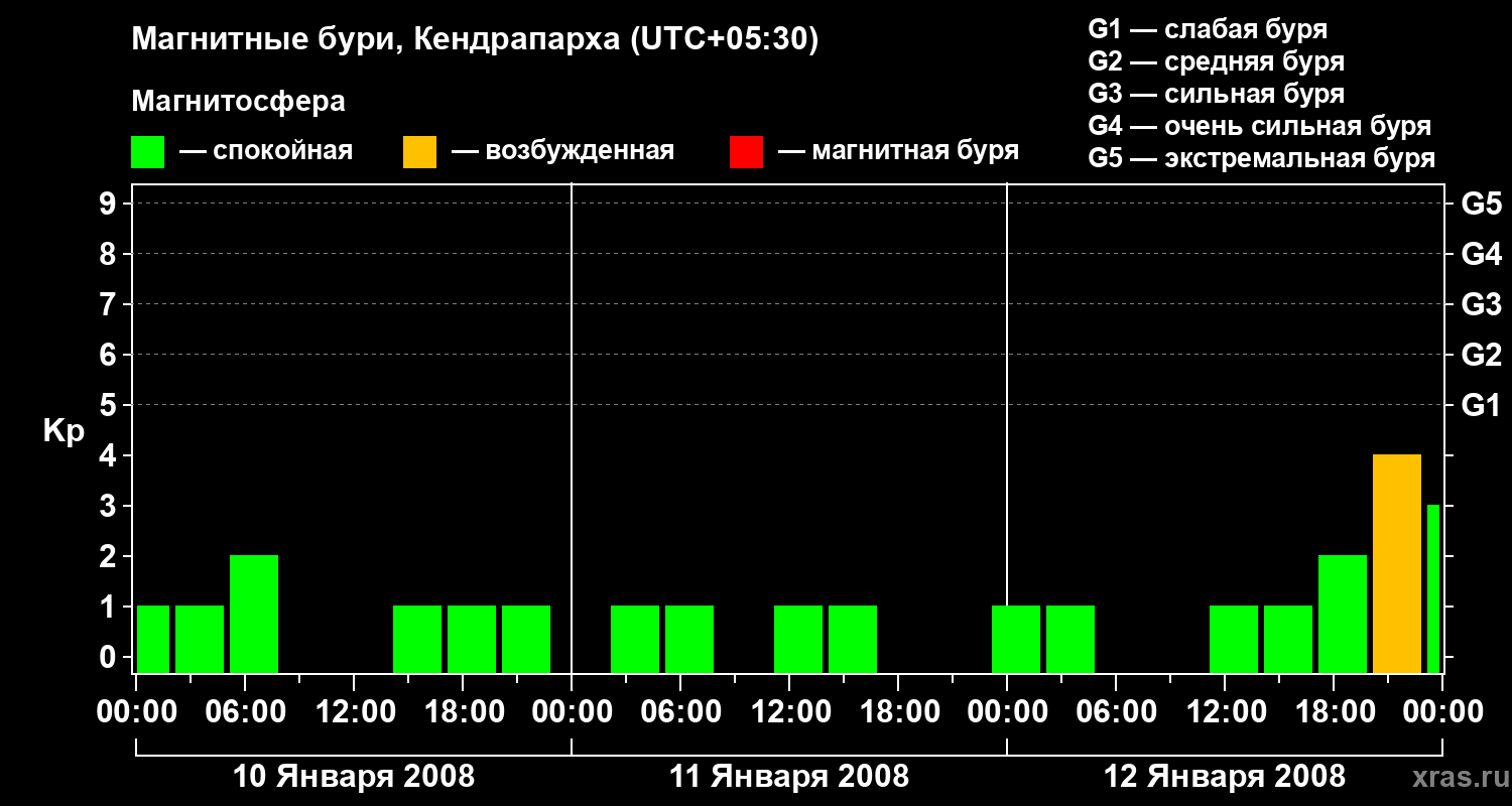 Магнитные бури в Кендрапархе в январе 2008 года