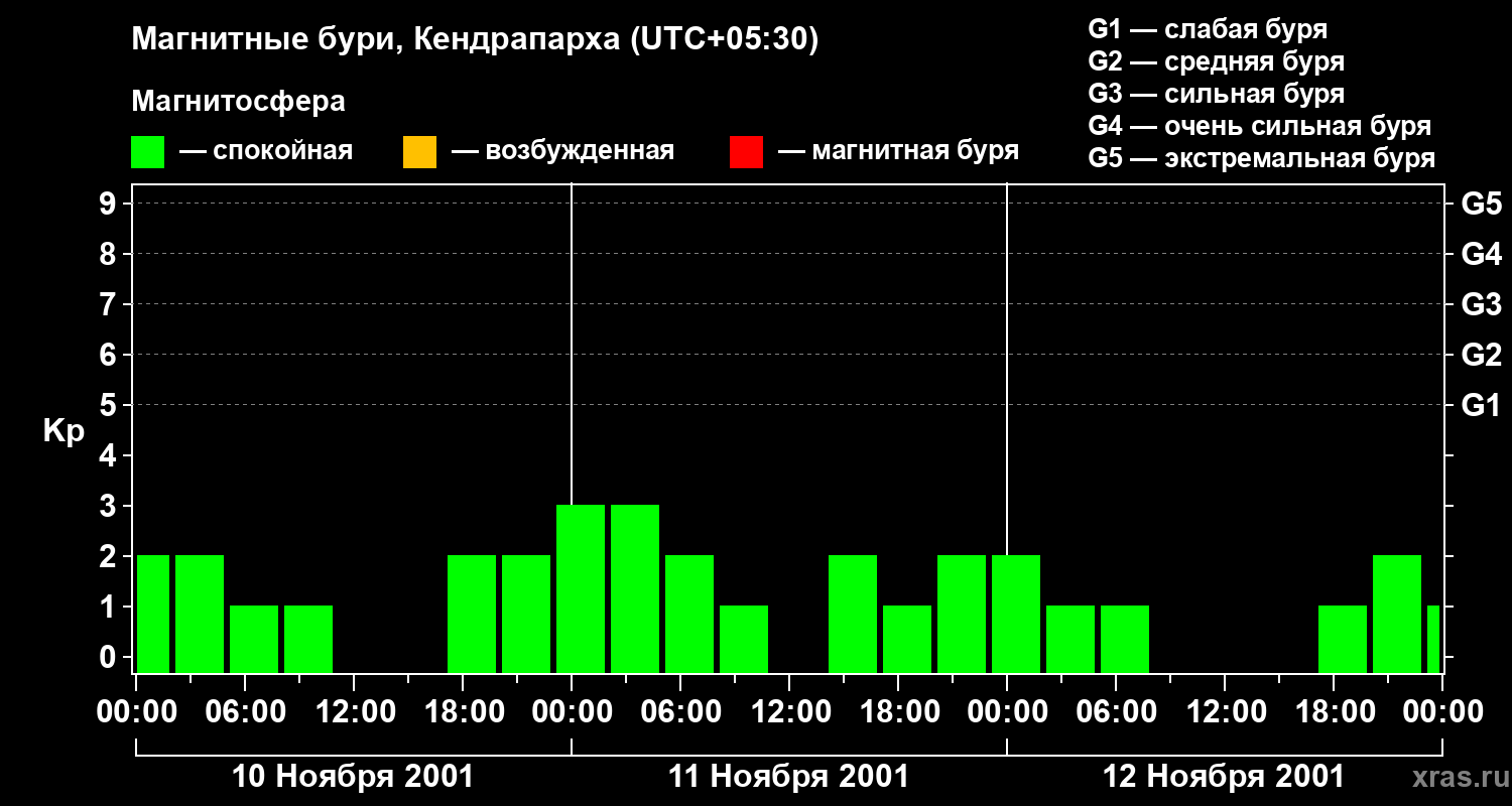 Магнитные бури в Кендрапархе в ноябре 2001 года