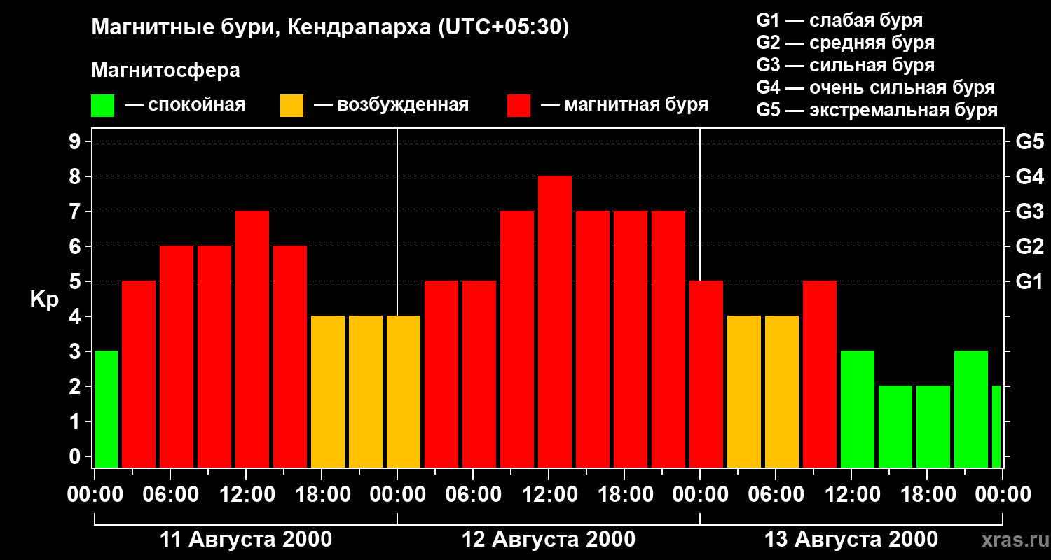 Магнитные бури в Кендрапархе 13 августа 2000 года