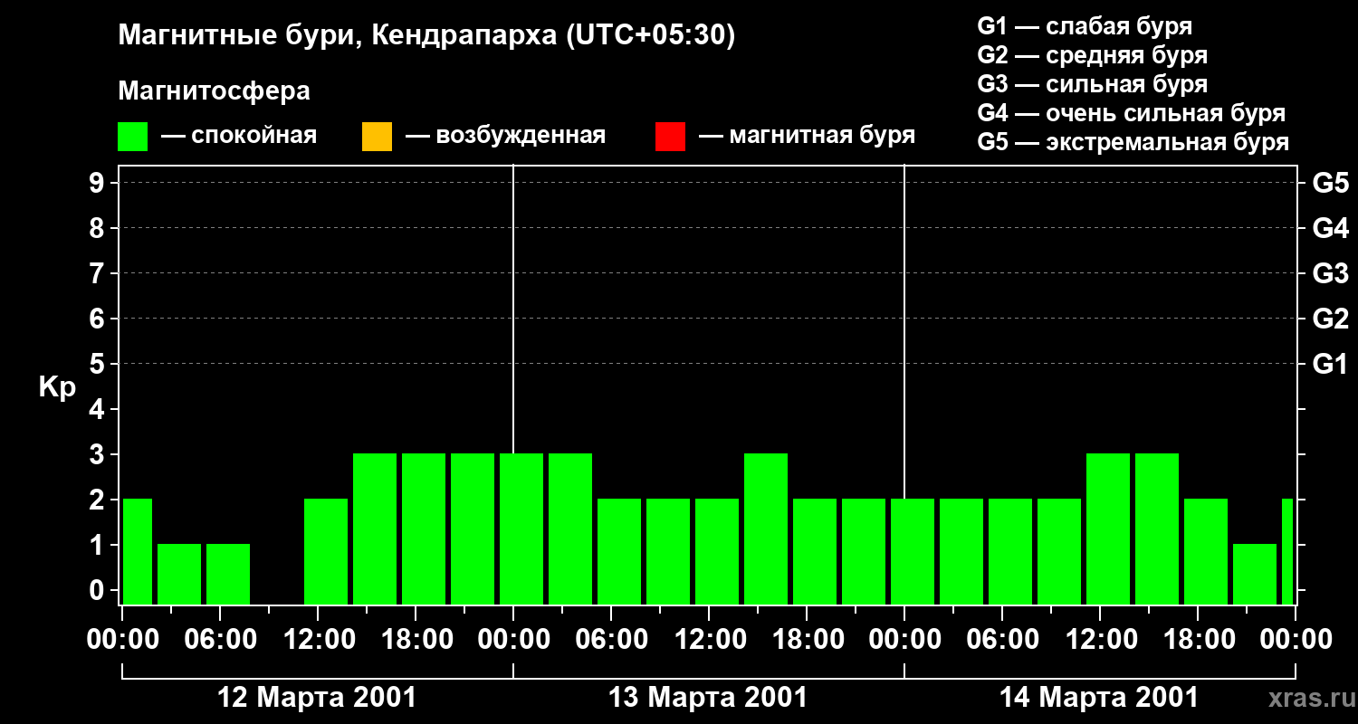 Магнитные бури в Кендрапархе — 14 марта 2001 года