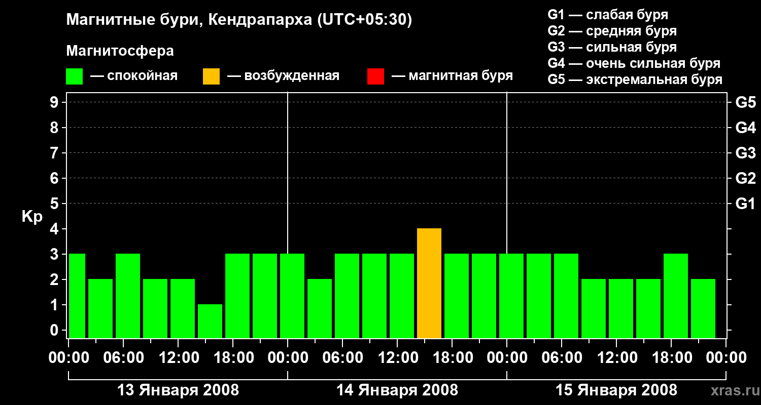 Магнитные бури в Кендрапархе — 15 января 2008 года