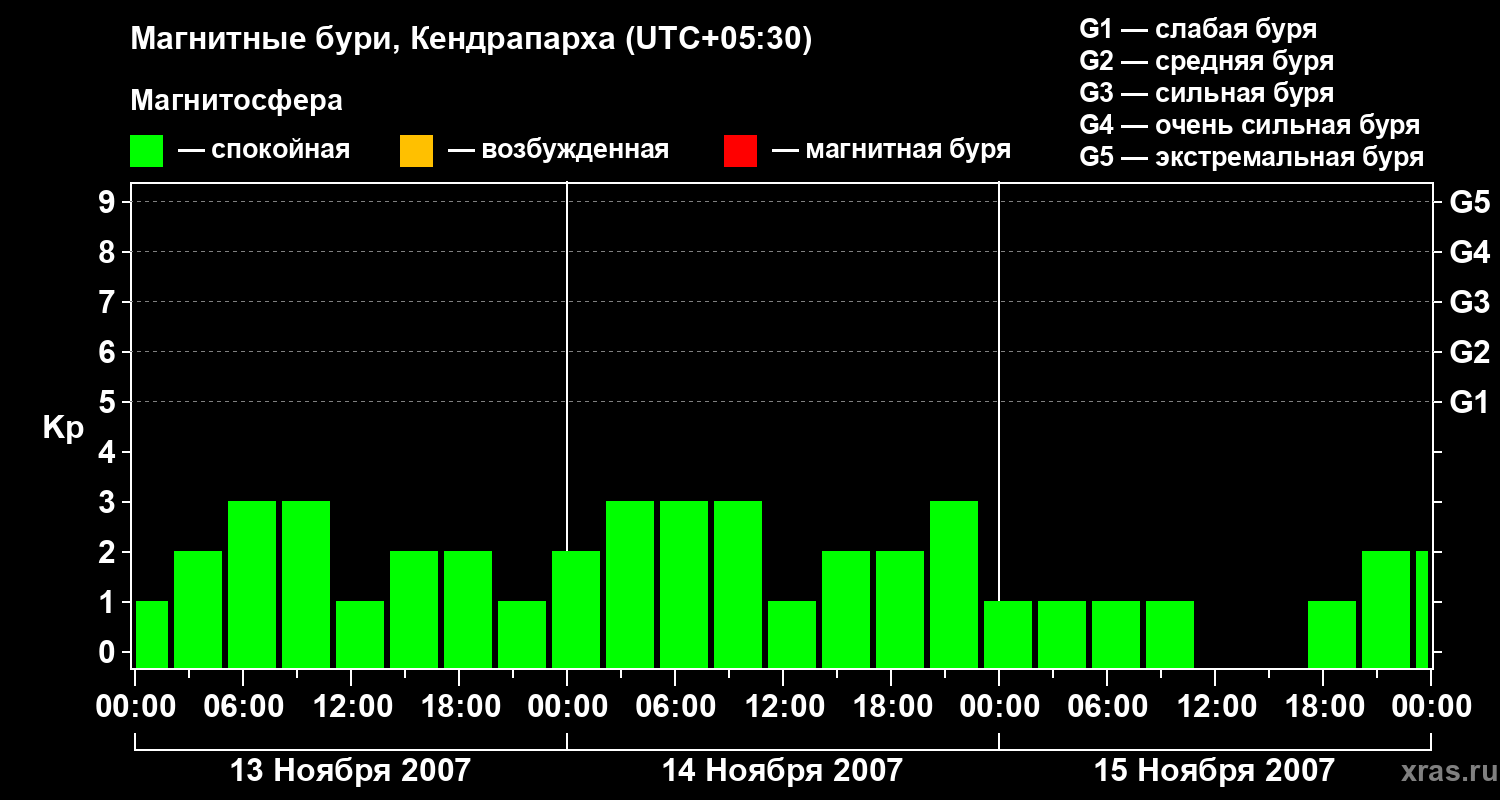 Магнитные бури в Кендрапархе в ноябре 2007 года