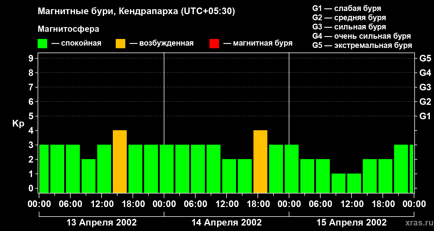 Магнитные бури в Кендрапархе — 15 апреля 2002 года
