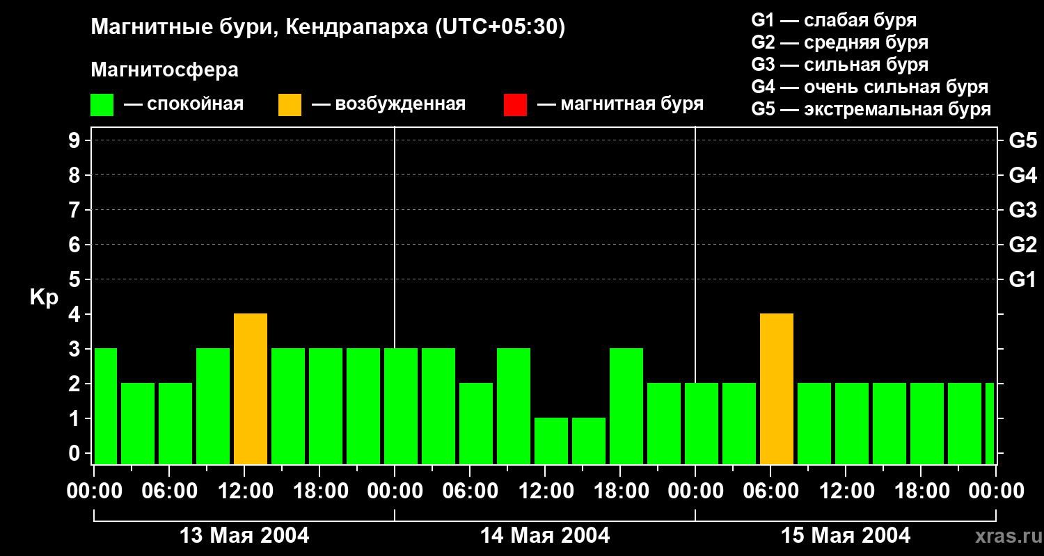 Магнитные бури в Кендрапархе — 15 мая 2004 года