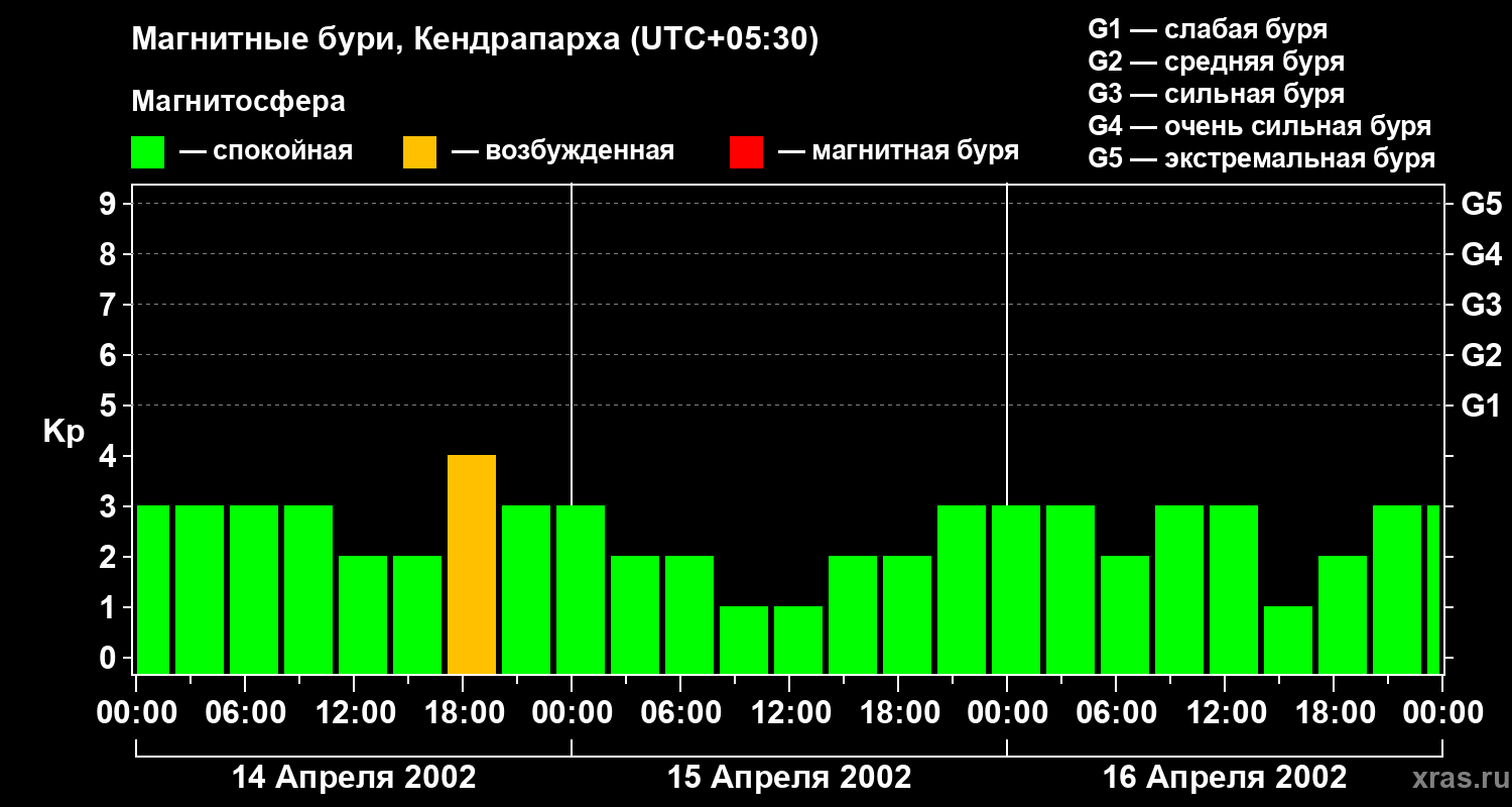 Магнитные бури в Кендрапархе в апреле 2002 года