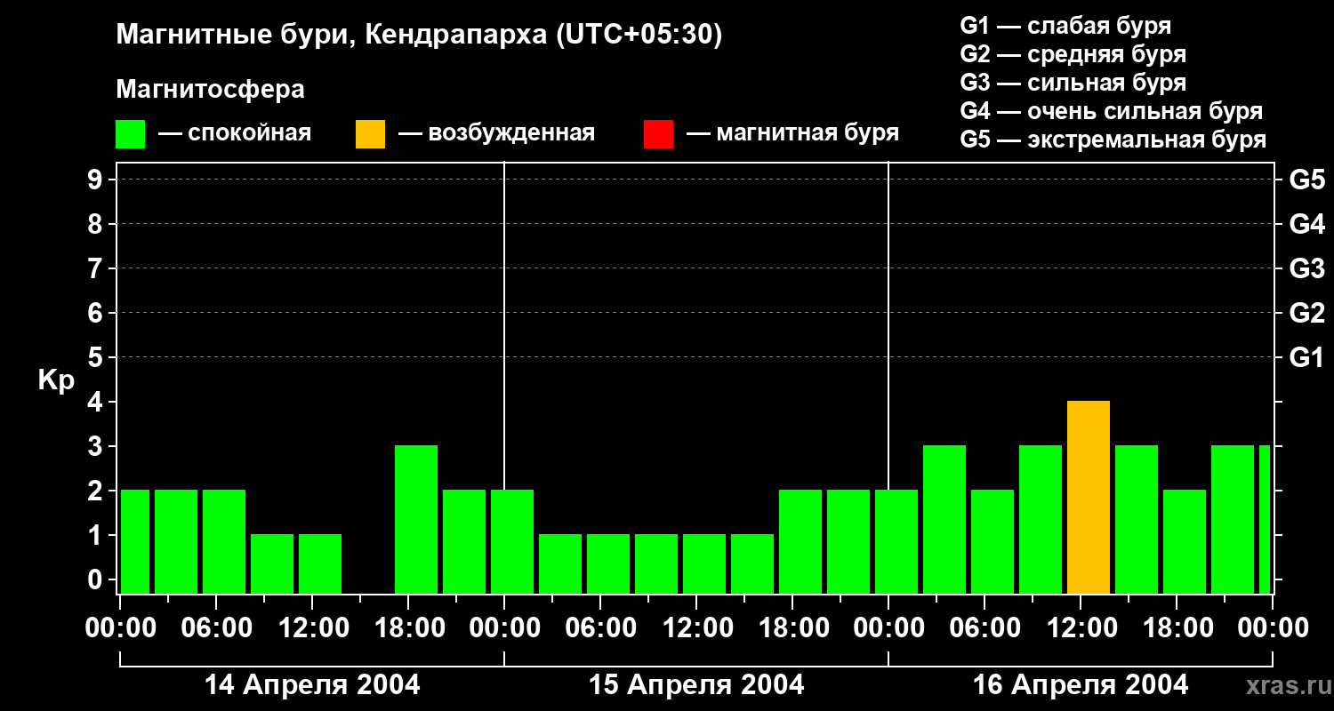 Магнитные бури в Кендрапархе — 16 апреля 2004 года