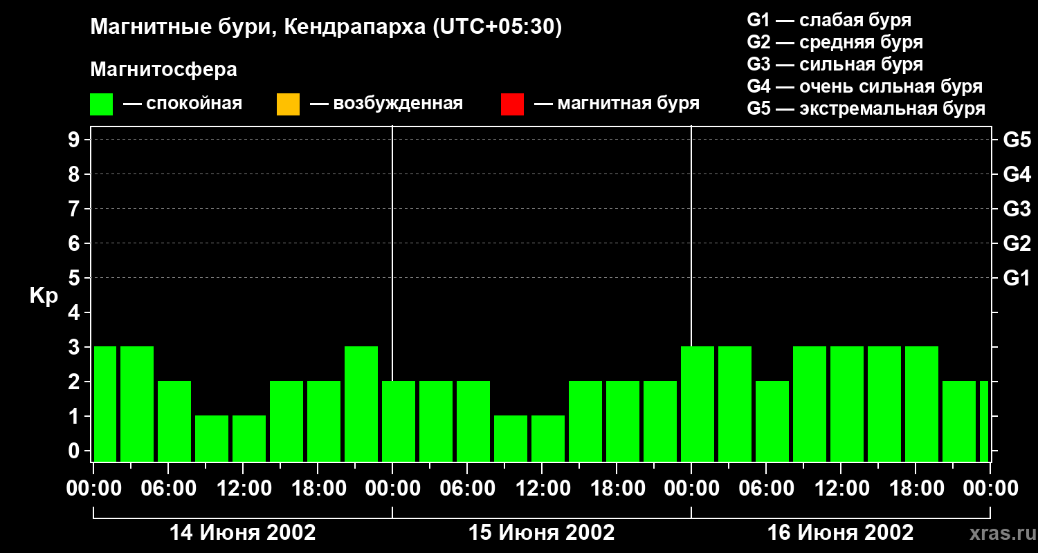 Магнитные бури в Кендрапархе 16 июня 2002 года