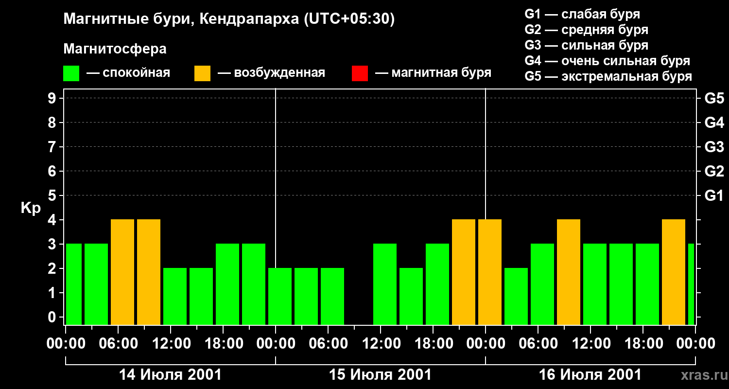Магнитные бури в Кендрапархе в июле 2001 года