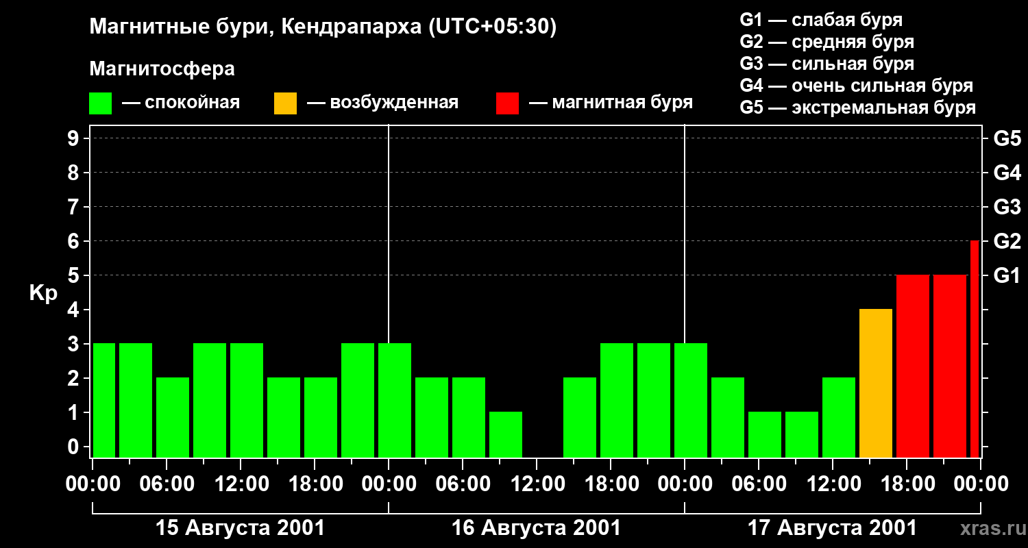 Магнитные бури в Кендрапархе 17 августа 2001 года