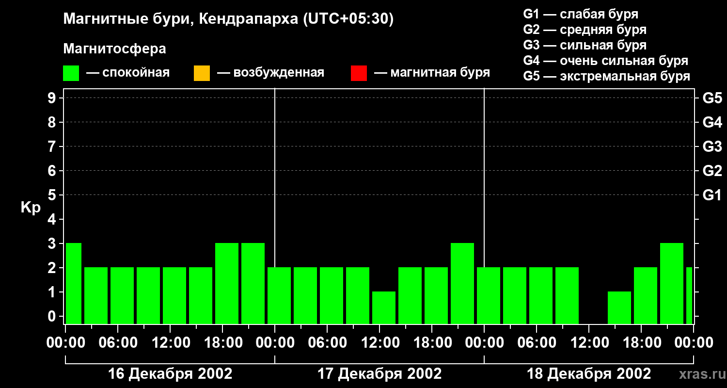 Магнитные бури в Кендрапархе в декабре 2002 года