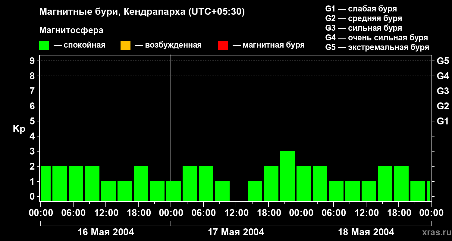 Магнитные бури в Кендрапархе — 18 мая 2004 года