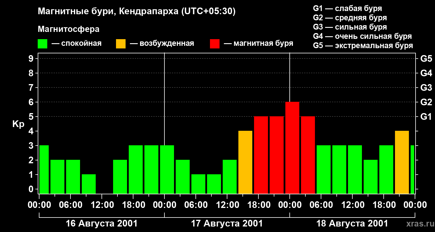 Магнитные бури в Кендрапархе — 18 августа 2001 года